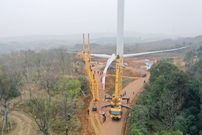 圖為電力公司承建的安徽宣城皖能九連山風電項目施工現場